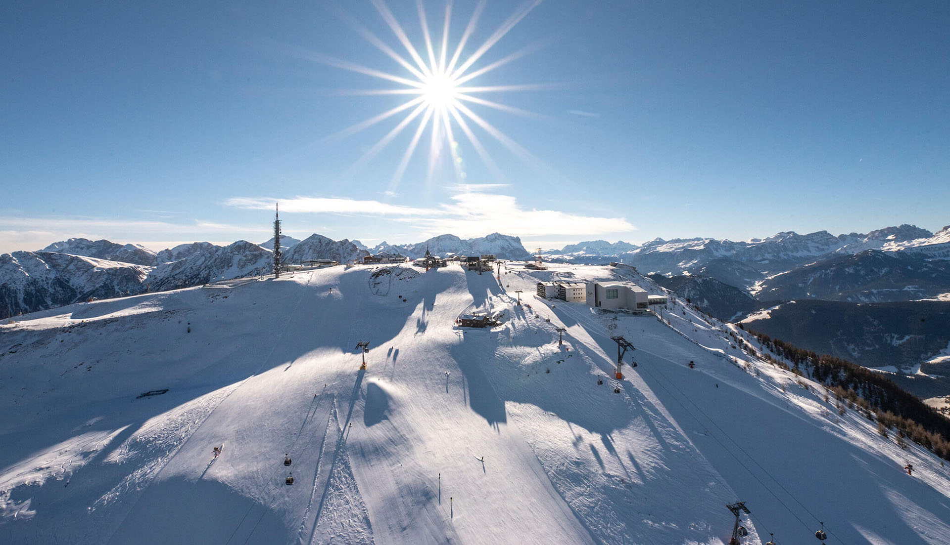 Der ideale Einstieg ins Skivergnügen liegt in Olang. Im Winter steht natürlich der Kronplatz im Mittelpunkt des Geschehens und eine Talstation ist direkt in Olang zu finden. Die Seilbahn führt auf 2.275 Meter zu einem Panorama, das den Namen Kronplatz wahrlich verdient. Vom Gipfelplateau führen 120 Pistenkilometer sternförmig ins Tag.